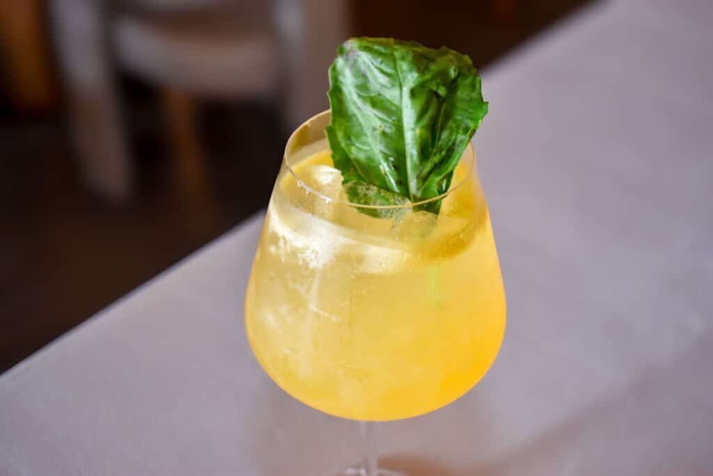 Call Me By Your Name: Beyond vodka | Prosecco | Crème de peach | Peach purée | House-made lemon syrup | Basil