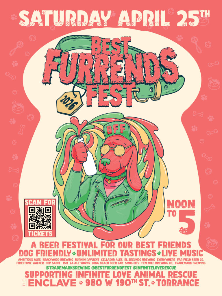 “We’ve always wanted to host a festival, and the new Torrance location is a great fit,” Trademark owner Sterling Steffen said. “When thinking of who to invite, it was all about our best friends and neighbors. And of course, we kinda add dogs to everything, so the Best Furrends Fest was born with a focus on Long Beach and South Bay breweries. We’re working with Infinite Love Rescue, who does an amazing job helping pups in need find their forever homes.”