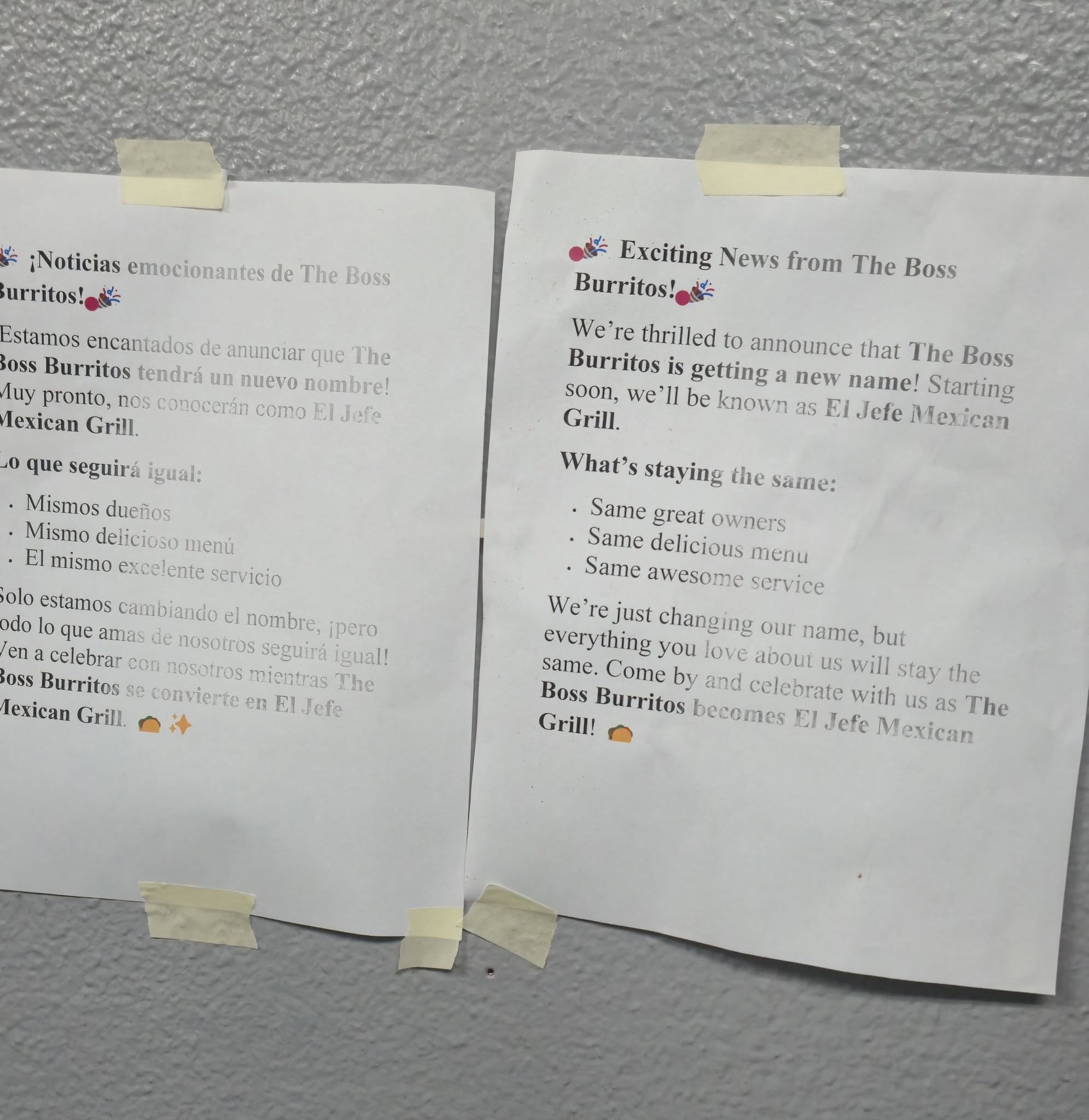 Boss Burrito to change name to ‘El Jefe Mexican Grill’