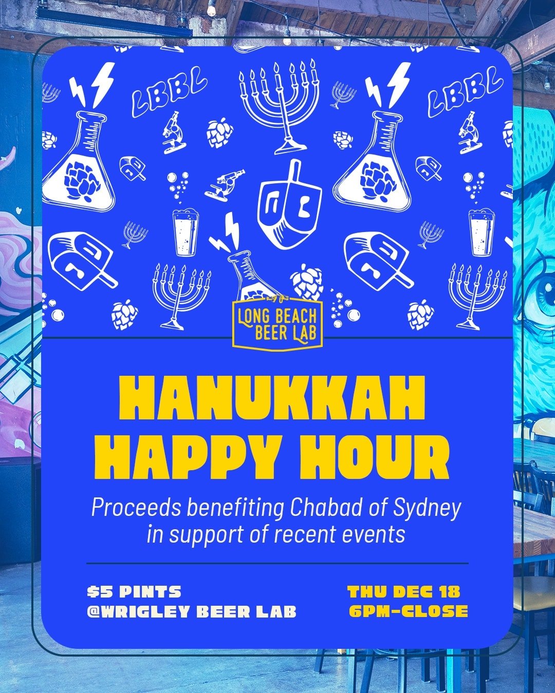 “We are going to bring some light to our community when this world may not be so bright. It has been a difficult week for us, and in lieu of the atrocious violence this Sunday in Sydney, we ask our community to join us for a Hanukkah Happy Hour this Thursday from 6 to close. The menorah will be lit, there will be $5 pints, and dreidels will be available, with all proceeds benefiting Chabad of Sydney. Let’s come together to show the world that a small light can dispel a vast darkness.”