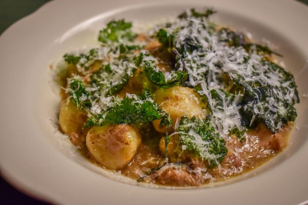 He brought back the space’s rye gnocchi—a stellar dish if there ever was one. Aruzzi rye grown in the Tehachapi Mountains is mixed in with the potato, giving it a nutty quality that separates it from a more traditional potato gnocchi. Layered with Tuscan kale and ragú made from wood-fired smoked chicken, it is easily one of the city’s best pasta dishes.