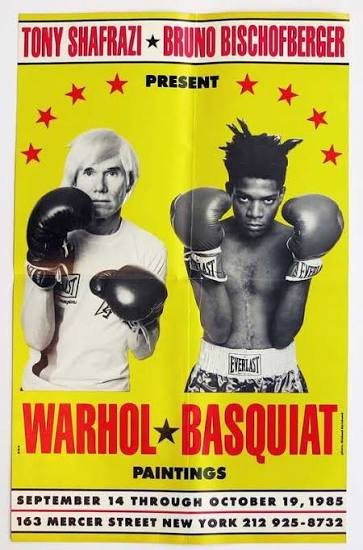 The Warhol-Basquiat inspiration behind the artwork advertising Waldo’s Pizza and Hamburgers Nice collaboration at Due Fiori. Artwork on right by Gianna Johns.
