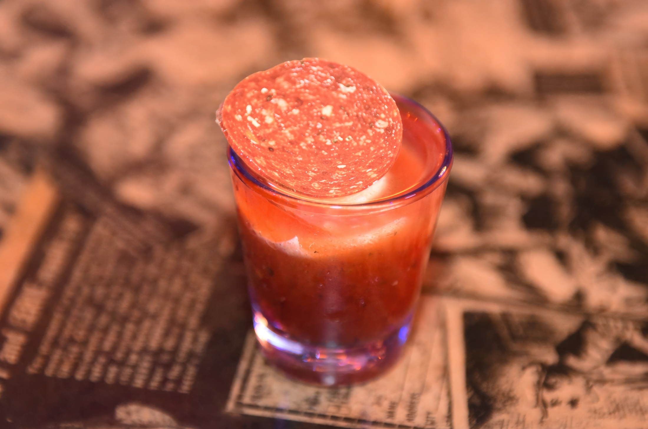 That same energy runs through the rest of the menu: Frankenhooker, Leatherface, Brujeria, Brimstone… And yes, there’s even a Pizza Shot made with vodka, ranch, pizza sauce, and a pepperoni garnish—less a mixology statement than a dare-turned-menu item.
