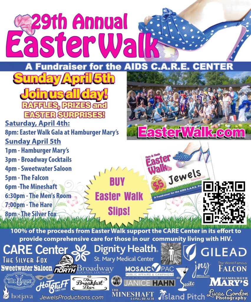 The 28th annual Easter Walk Long Beach will continue its tradition of uplifting those in need, celebrating queerness, and connecting businesses with patrons—all in a pair of heels. But it comes at a time of utmost importance: “HIV treatment and prevention services in LA County alone are facing a possible shortfall of $60 million with potential cuts that are happening,” Jewels said.