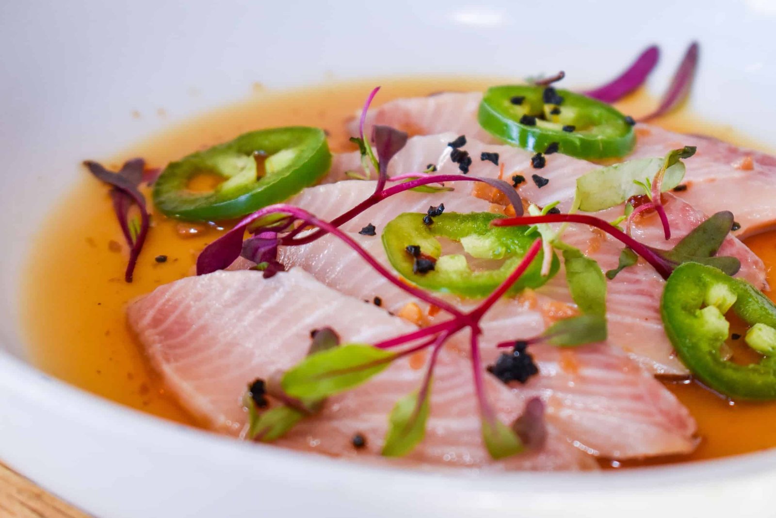 Hamachi Crudo: Yellowfin tuna | nuoc cham | jalapeños | cilantro