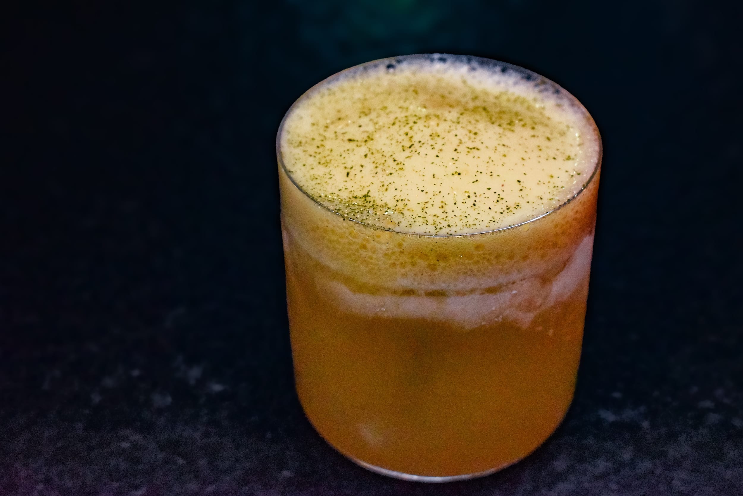 Cenizo malvado: Nuestra Soledad Mezcal Reposado | green chile vodka | cilantro | lime | peach foam