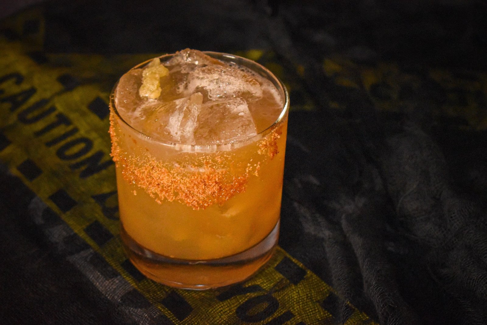 Mr. Vampire: Loch Lomond Single Malt Scotch | Oolong Honey Tea | Ginger Syrup | Lemon | Ginger Sugar Rim
